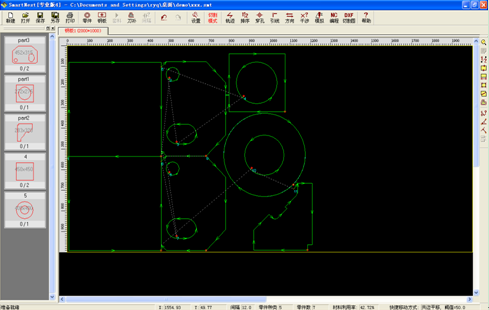 4、可以直接導入外部DXF/DWG格式的排料圖進行切割路徑優化和NC編程,并可將整張排料圖自動拆解成單個零件,從而利用本軟件對原排料圖進行修改或重新套料。